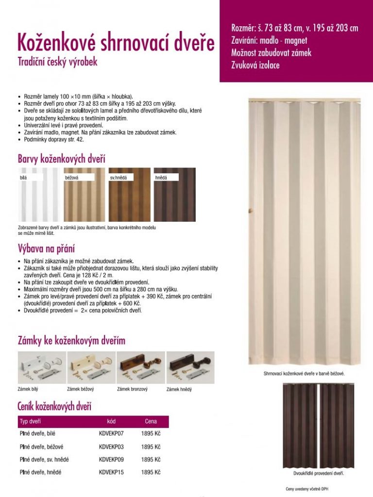 dendro202018. 11. 202012. 12. 2021Naše nabídka Dveře DŘEVĚNÉ PALUBKOVÉ DVEŘE Nově možnost objednání dveří a zárubní VČETNĚ zaměření a montáže Materiál : Smrk Vchodové dveře - zateplené plné prosklené - dvojité sklo Interiérové kazetová výplň nebo sklo Výběr ze sortimentu Aktuální dostupnost a cenu ověřte na prodejně Vchodové dveře - 2 x sklo 4950,- Vchodové dveře - Plné 4100,- Interiérové dveře - Plné 3790,- Aktuální dostupnost a cenu ověřte na prodejně Další typy a možnosti prosklení poptávejte na prodejně INTERIÉROVÉ DVEŘE Nově možnost objednání dveří a zárubní VČETNĚ zaměření a montáže Povrch : fólie CPL laminát lakované Dekory : Plus , Extra Výplň : voština děrovaná DTD (dřevotříska) Protipožární výplň Na objednávku Katalog dostupný na prodejně Plastové a koženkové lamelové dveře Nabízíme plastové a koženkové lamelové dveře na míru Vzorník dekorů na prodejně Plné , prosklené Kvalitní plastové lamely a spojovací lišty Možnost atipyckých rozměrů Termín dodání obvykle do 14 dní O možnostech provedení a cenách se informujte na prodejně Čalounění dveří O cenách čalounění se informujte na prodejně Termín dodání obvykle do 14 dní Dveře